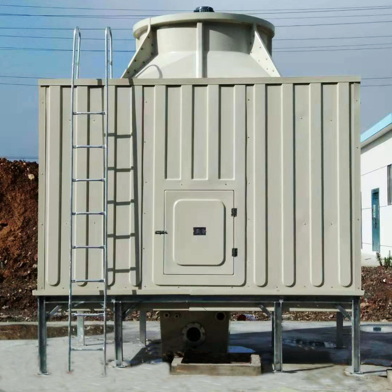 橫流式玻璃鋼冷卻塔簡介本系列橫流式玻璃鋼冷卻塔采用兩側進風,靠頂部的風機,使空氣經由塔兩側的填料,與熱水進行介質交換,濕熱空氣再排向塔外。填料采用兩面有凸點的點波片,通過安裝頭使點波片粘結成整體,以提高剛性,兩面的凸點還可避免直接滴水,因此提高了水膜形成能力,填料尾部設有收水措施。